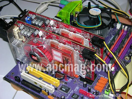 不错,自从交火发布以来,就缺少真实详尽的测试成绩说明ATi双卡技术可能提供的优势。APC近日获得了一块工业Crossfire主板,核心部分为ECS PA1 MVP Extreme主板,使用ATi的RD400北桥以及SB450南桥芯片。