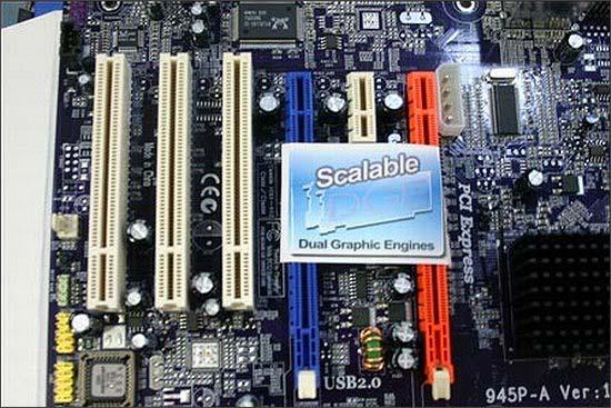 945P-A采用了945P+ICH7芯片组,可支持LGA775接口全系列Intel处理器,支持HT、EM64T技术,最高支持1066MHz前端总线,这也为双核心处理器的多任务并行处理提供了良好的条件。4根DIMM内存插槽,最高可支持容量为4GB的双通道DDR2 533/667内存。在扩展性能方面,主板提供了2条PCI-E x16插槽,但这并不是为是组建SLI系统,而是在精英的双绘图引擎核心技术(Scalable D.G.E.)支持下同时使用两块不同的显卡,实现独立的双3D影像显示,而且最高可支持4台显示器同时输出。