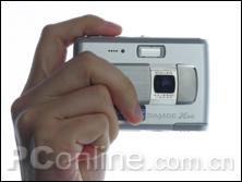 而在持机手感方面,本次参与评测的机型由于每款都是超轻薄机型,大多注重外观整洁而忽视了人体工学设计,所以实际手感往往不太尽人意。而其中做得比较好的应该是卡西欧Z57,美能达X60和佳能的IXUS700,他们的厚度比较适中,能够较紧地握在手中,手指位置排列也可以做到相对自然。而索尼T7和三星i5两机机身外表的防滑性能相对不高,再加上机身厚度较薄,总觉得持机感觉不够平稳。