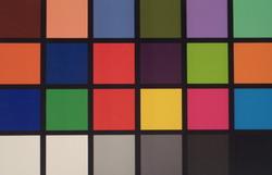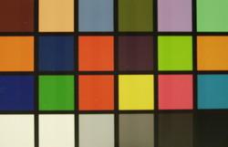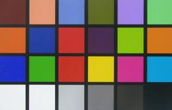 在白炽灯环境下面,由于光线色温的影响,这时相机使用自动白平衡拍出来的画面往往偏黄,而相机内部的“白炽灯白平衡”模式就是使画面偏向蓝色以弥补环境对画面的偏黄影响,以将色温纠正到比较接近于实际色彩的情况。测评人员在白炽灯环境下使用相机的自动白平衡和相机内置的白炽灯白平衡模式分别进行标准色卡拍摄,参评的十款相机实拍表现如下所示: