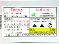 该电源得到了国内3C认证。通过电源的铭牌参数我们可以看出,这是一款额定功率为250W的电源。其双路+12V输出分别为14A和8A,完全可以应付目前或未来主流平台对+12V的需求。