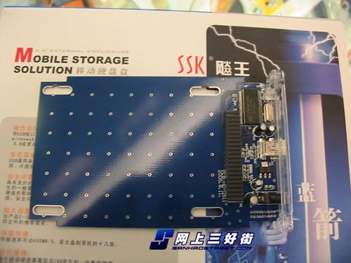 飚王蓝箭移动硬盘盒采用USB(Universal Serial Bus)界面传输技术,支持热插拔,适用于各种带USB接口的原装机、兼容机、笔记本电脑、苹果机等,用以实现便携式海量存储。 飚王对这款产品提供了三个月保换,一年保修的贴心服务,目前的市场价格是80元, 和同等价格的产品相比这款产品的性能比较突出,感兴趣的朋友请与经销商联系一下。