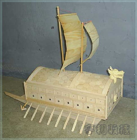 配上龙头,这只龙船威风凛凛,作为木材担心容易受潮变形,上漆来增加美观也可以避免受潮。