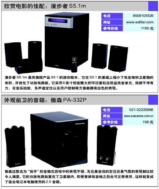 电脑和家电的融合已是大势所趋,在这两种产品中,“多媒体”无疑是一个共同的沟通点,基于目前的技术和人们的认识,多媒体的概念基本是通过视、听两种感官来实现的。因此,大屏幕显示设备和音箱成为了PC中最有希望率先发展成“类家电”产品的设备,下面我们讨论的主角就是这两大法宝中的一位??多媒体音箱。