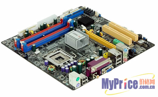 主板提供了四条SIMM插槽,并且采用两种不同的颜色来加以区分,同颜色的两条可以组建双通道,最大支持容量为4GB的DDR400内存。尽管主板集成了显卡芯片,可是主板还是提供了一条PCI-E 16x插槽,方便日后升级更强劲的显卡,以胜任更高要求的需要。主板还拥有一条PCI-E 1x插槽和两条PCI插槽,为主板日后扩展预留了很大的空间。
