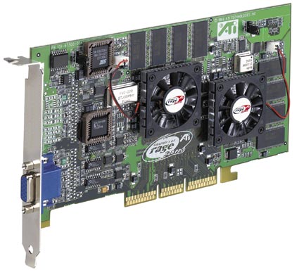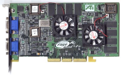 提到双芯片,我们就不能不提一下ATI的Rage Fury MAXX,该显卡同样发布于2000年,采用了两颗Rage 128图形芯片,是为了和Geforce 256对抗而生。但是不幸的是,Rage Fury MAXX并没有如ATI预期的那样在市场中引起轰动,主要原因还是性能不够强,并且AGP桥接过于复杂。驱动也致始致终没有解决,只能工作在Windows98下在现在看来几乎是不可思议的事情。而最终该显卡成为了一个经典的短命鬼。
