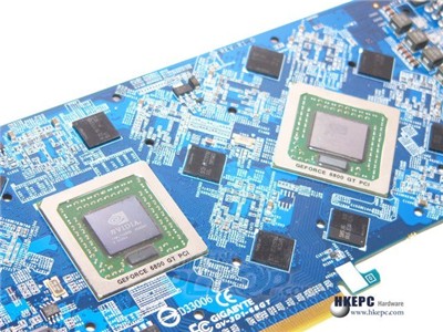 这是技嘉生产的一款双6800GT芯片的单卡,型号依然沿用3D1命名。相比此前发布的3D1 66GT,这款3D1 68GT除了在性能更进一步外,在兼容性方面也得到提升。也就是说,3D1 68GT可以在非技嘉品牌的主板上使用,而且对主板是否支持SLI并没有要求。