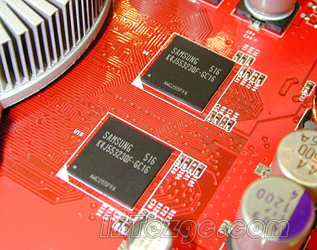 在显存方面,直接配备了目前市场上最快的三星1.6ns GDDR3显存,比较夸张,称的上是同类产品中的性能之王。4颗8Mx32显存,实现128bit位宽128MB容量的双128规格。