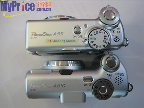 A610相机与A95在外观上的比较: