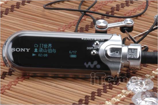 NW-E403的惊艳首先表现在外形设计,竖着放像一直香水瓶,横着放则与索尼以前MD系列线控的设计风格相似。按键的设计十分简洁,采用了索尼线控独有的推拉导航杆,拖拉式操作。虽然机身采用比较深沉的颜色,但配合透明塑料和OLED显示屏的设计,使原本暗淡的色彩更能散发出独特的韵味。而机器的背面则是金属材质设计,还与机身正面有流线的结合,使得整机手感更好。