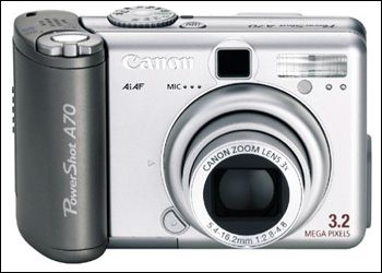 2003年,作为A60升级版的300万像素的A70,率先在家用机型中加入光圈优先与快门优先,使家用机拥有了专业功能的体验,也在全手动功能的卖点吸引下,A70赢得了市场的认可,成为了销售榜的明星。A70的成功,为A系列的演变发展打下了良好的基础。但也在同一年底,佳能推出了功能强大的A80。