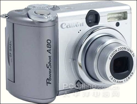 A80的出现是佳能A系列性能配置的一个里程碑。这体现在A系列的两项巨大演变:一是它首次在A系列中搭配1/1.8英寸的CCD,保证更好的成像质量。(以前的A系列都采用1/2.7英寸的CCD);二是首次在A系列中使用可旋转270度的LCD,方便使用者使用特殊角度的取景。当年的A80作为一款400万像素的机型,单凭这两项首次和合理的价格在家用领域已经难逢敌手。要知道A80所搭配1/1.8英寸400万像素的CCD已经和当时佳能的旗舰级的准专业机型G3无异,也因此A80得到了一个“简化版G3”的美称。也从A80开始,A系列进入了一个配置1/1.8英寸CCD的年代。