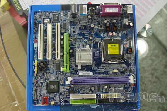 这是来自技嘉的GA-8S661GXM775主板,也是我们今天要介绍的最后一片主板。采用SIS661GX+SIS964的组合,誓要向二三线品牌的整合型主板发起冲击。三相供电,采用了在低端主板上很少见的屏蔽式电感和日系名牌电容,带一条AGP槽和三条PCI槽,支持SATA,但不支持阵列不免有点可惜,但须知,SIS芯片具有很强的磁盘性能,对这方面有特殊要求的朋友不妨多多留意这片主板。市场报价550元。