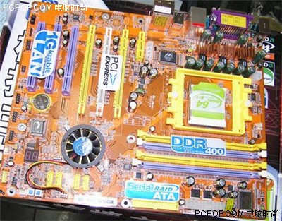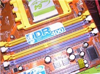 板上还提供了高达四条的内存插槽,最高支持4GB的双通道DDR内存,插槽用黄色和紫色来区分,用户只需将内存插入相同颜色的插槽上就可组成双通道,非常方便。