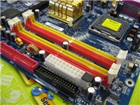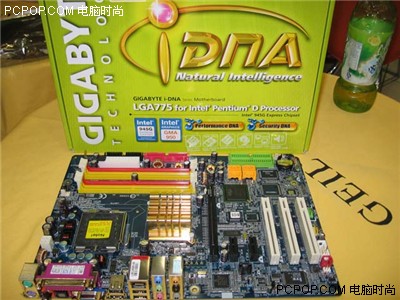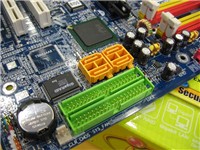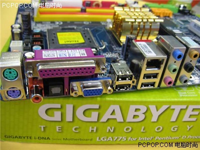 技嘉这款945G主板的型号为GA-8I945G,使用了经典的蓝色PCB基板。芯片组为英特尔最新的i945G搭配ICH7组建,前端总线高达FSB1066/800,支持英特尔LGA775结构处理器,包括最新的64位双核心处理器。这款主板的供电部分为三相回路设计,电容用料以三洋OSCON系列电容和红宝石为主。I945芯片组对于双核心Pentium D处理器的支持,主要是看主板的供电方面是否能够满足处理器的需求,条件符合后,通过BIOS刷新即可实现。