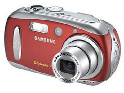 三星V10是V系列的高端产品,外观修长的设计,配合上弧形线条,看上去十分的可爱。在功能方面,DIGIMAX V10使用了700万像素的CCD感光元件,大小是1/1.8英寸,最大可以拍摄分辨率为3072*2304dpi的静态图片。3倍光学变焦的施耐德镜头,焦距范围相当于35mm相机的38-114mm,最大光圈F2.8-5.1,最近对焦距离为80cm,最近微距4cm。2寸的LCD液晶显示屏,视频拍摄可以支持MPEG4的存储格式。与大多数相机只采用USB1.1传输接口不同,V10采用的是USB 2.0接口,可以拥有更快的传输速度。此外,它支持SD/MMC存储卡存储,采用充电锂电池供电。