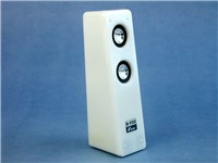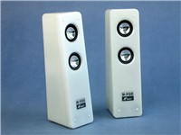 MPOD100采用外置变压器供电,从变压器的规格来看提供了非常充足的电力。MPOD100每个音箱使用两个金属振膜单元,而单元所在表面向上倾斜提供了自然的仰角,使扬声器可以很好的指向耳朵。MPOD100的操作非常简单,音量与开关都综合在一个电位器上,简约的风格被发挥到极致。