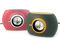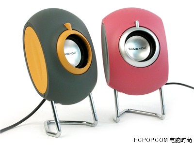 一对音箱两种颜色,如此的设计在音箱中相当少见。而桑巴达的U201笔记本音箱便采用了粉红色与橙色+灰色的组合方案。U201的外形风格卡通,与轻骑兵的X10Q一样定位于年轻用户。U201的支架结构也非常简单,不过金属架的支撑相当牢固而且让扬声器构成仰角很容易指向使用者。