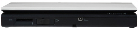 指示灯采用斜面设计,即使合上面盖后,仍然清晰可见。SD读卡器放置在右边。另外,前方还有一个PCMCIA接口控制拴,一个火线接口。
