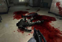 这款游戏的一大亮点就是Havok2物理引擎所附带的布娃娃破碎系统(Rag-doll),由于游戏场景内摆放的物品几乎都可以肆意的破坏,因此在战斗中,你可以随处看到各种被枪械打烂的碎片,当然血腥的画面也是必不可少的,死者的断肢,敌人中弹后流出的血液等等。正是因为血淋淋的场面和惊诧恐怖的过程,游戏已经被美国“ESRB”组织贴上“M”级的标志(18岁以上玩家方可购买)。