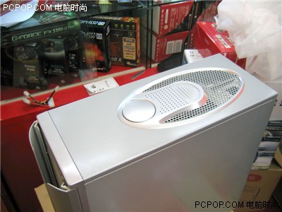 Armor机箱的扩展接口设在机箱顶部,有前置音频、USB接口和1394接口。与接口板盖相邻的是大片的蜂窝状散热孔,从散热孔面积上可以知道散热能力应该不错,再加上机箱本身庞大的内部空间和风道建设,即使被动散热能力就已经十分可观了。