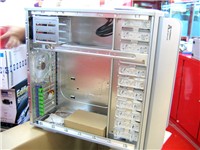 它不仅仅是靠外观吸引人,其内部精湛独特的设计更加引人注目。机箱的内部结构采用了托架划轨式设计,有很高的扩展度,也易安装。在庞大的内部空间支持下,机箱原有的支架最多可以放8块硬盘,如果还要扩容,也能再添加6块硬盘。就是说该机箱最多可安装14块硬盘。