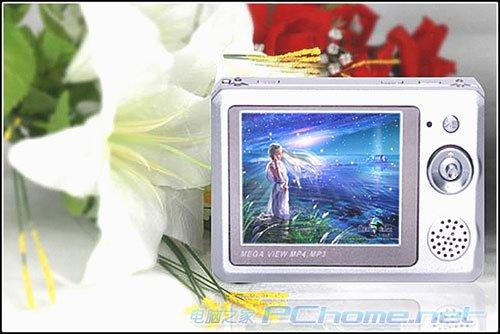 数码相机的照片,支持EXIF2.1; •内置麦克风录音,支持LINE-IN对录; •支持视频录制,TVIn; •视频输出,TV OUT(NTSC/PAL); •游戏、万年历、时间显示; •多语言(中/英)设置; •外插SD/MMC卡;扩展存储空间; •内置锂电池; •内置喇叭; •显示屏:2.5英寸,65000色真彩屏; •外形尺寸:90*60*17.5mm