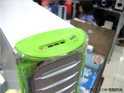 在机箱面板的顶部,除了具备目前主流的USB接口和音频接口外,值得一提的是对1394火线接口也同样进行了前置。前置接口的设计虽然在很多机箱上都可以见到,但一般都在机箱底部,而5603却颠覆传统,将操作接口置于顶端。它的POWER键和RESER键也移位于机箱前面板上部,这样设计会使某些习惯将主机放在电脑桌下的用户觉得更加方便。