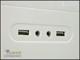 正面看去,MF309的前面板在四角装饰了四条小斜银线,猛看上去还有一点苹果电脑的味道,不过其驱动器扩展能力稍逊一些,只提供了三大一小的安装位置,好在对于一般用户来说倒是也够用。前置I/O接口位于前面板正中,提供了USB2.0×2以及一组音频接口。