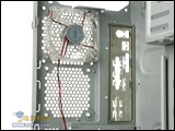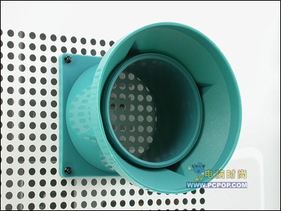 在机箱侧板正对处理器的地方,MF309开出了一块面积相当大的散热孔,再加上其它部位的风扇,可以有效让机箱内部的空气流通。同时在侧板下部,还有一排进风孔,其位置正好位于APG插槽附近,兼顾到了显卡的散热。