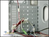再来看看另一面,原来多彩在散热孔的背面还是安置了一个专用CPU侧置导风罩,看来这也是为了符合Intel所倡导的38度机箱概念而做,毕竟这样可以有效地将CPU周围温度控制在38度左右,大大增加了系统的稳定性。