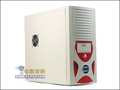 前面板上部的驱动器位使用了简单的条形装饰,但是却显得非常有气质,因为这种装饰一般多用于服务器机箱,而下部的造型很像一个“X”,周围分布着电源、硬盘指示灯以及电源开关和复位按键,中间则是一个蓝色的液晶屏幕。隐藏在底部舱门里面的前置I/O接口,提供了USB2.0×2以及音频、耳机插孔各一。