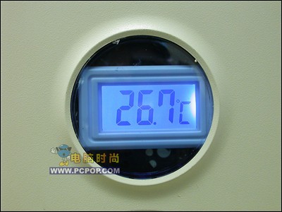 现在38℃机箱标准已经尽人皆知,可是具体效果怎么样谁也不好说,这次先马索性在前面板上安置了一个液晶屏幕,专门用于显示机箱内的温度,这样内部温度是否达到了Intel所规定的38℃,其结果一目了然。