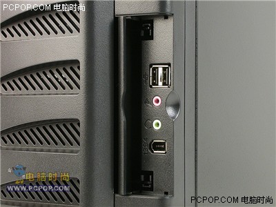为了用户的使用方便,联志将前置的I/O面板设计在了面板边上,这样就避免了每次都要打开驱动器舱门才能使用的麻烦,同时前置I/O还有一个滑盖保护,防止灰尘的进入。其内部提供了USB2.0接口×2、IEEE1394火线接口×1以及一组音频接口。