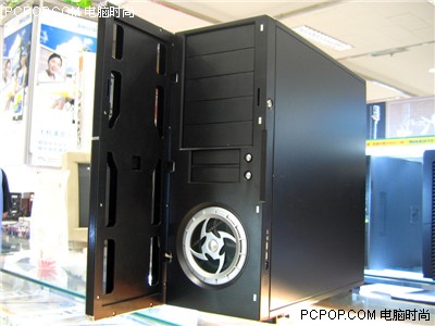 机箱前面,还配备了12CM进气风扇,这与机箱背后的那个12CM出气风扇配合,能形成一个统一的风道系统。机箱的I/O输出接口被集成到机箱的侧面。包括音频接口、USB接口、IEEE1394火线借口。