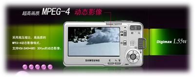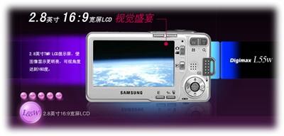 如果说前一段上市的松下LX1第一个使用16:9黄金比列的CCD,那么配上这个16:9的屏才能更真实的显现出效果!但在上述相关资料中小编并没有发现此款DC的CCD比例,估计还是传统的4:3,这样拍摄的照片在屏幕上显示如果强行按16:9显示将有变形的情况,由于还没有看到真机,所以现在一切也只能是猜测。看来上面的双16:9在现实阶段也只能好似YY了!不过相信明年一定会有第一款此种比例的产品出现在大家面前!不过5倍光学与MPEG4的支持还是让L55W增色不少。