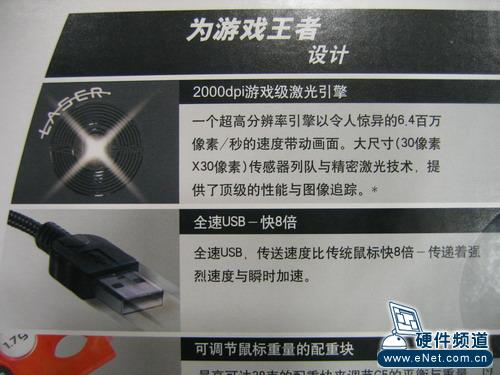 拥有2000dpi游戏级激光引擎的G5,每秒可以处理6.4百万像素,因此必须拥有更快的传输速度,才能满足高数据量的传输,所以罗技为其加入了2.4Ghz全速USB接口,相比传统鼠标快8倍。