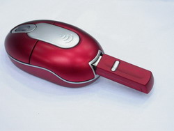这款TCB无线蓝牙鼠标被称作蓝月貂影系列,型号为TTB5000,从外形上看它与普通的无线光电鼠标差别并不大。采用了左右对称的设计,方便了习惯使用左手的用户,结构设计符合人体工程学原理,大滚轮在浏览网页时更能得心应手,再加上火红的颜色看起来十分醒目,如果不说这是蓝牙鼠标可能就会把它知识当作普通的光电鼠了。不过可不要小瞧这款鼠标,它兼容Bluetooth V1.2标准,是不折不扣的高科技产品。