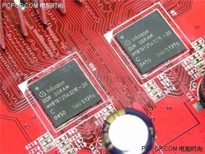 选用英飞凌2.0 ns GDDR3显存芯片,4片显存构成128MB/128bit规格。这款显卡的预留空间非常充足,默认工作频率为1000MHz,剑龙G6600-D3的实际出厂频率仅为550MHz,超频空间相当大!