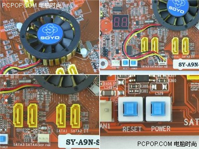 秉承梅捷四大豪华、五大坚持的设计理念,SOYO梅捷SY-A9N-SLI-GR主板采用了三相加强型供电,走在国内前端的CPU供电设计,电感圈全部使用密封式的,能够有效地屏蔽外部的电磁干扰,而供电电容则全部使用了SANYO(三洋)顶级的日系高级电容,完全消除了电容爆浆的危险。另外值得一提的是这板子不但使用了Infineon的MOSFET管,而且还在MOSFET上面加装了散热效果良好的铜质散热片。