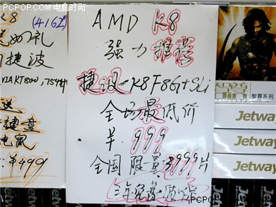 台湾板卡厂商——捷波(Jetway)续推出“754终极超频王”——智尊K8T7P后,又推出基于nVIDIA NF4 SLI芯片,支持AMD 939 CPU的最新力作:智尊K8F8G+SLI主板。并从即日起针对全国举行特价优惠活动:特价仅需999元,限量3999片。