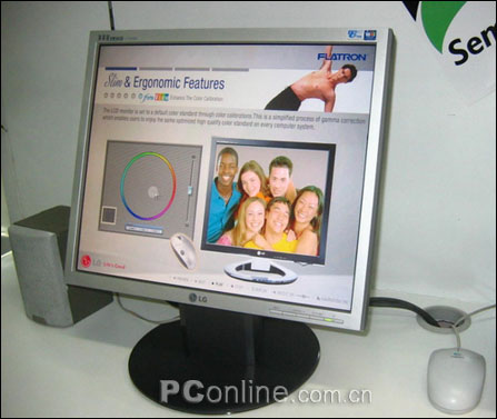 公开报价2299元的LG L1750SQ是50系列中的17寸产品,它给人的第一印象就是拥有宽大的屏幕、十足的“面子”,而这一视觉感受源自L1750SQ“狭小”的超窄边框设计。L1750SQ机身采用了前银后黑的双色色调,配合黑色圆形底座设计,使整机看上去时尚大方。