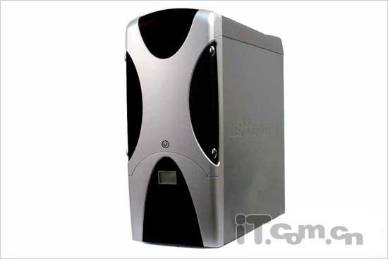 机箱在外型设计上简捷明快,前面板的图案呈英文字母的“X”型,图形的延伸体一直贯穿于机箱的整体具有一致性。为了有别于其它机箱产品,在前置功能性的扩展性上这款保利得4203就开始大下功夫,顶部除了设计有常规的前置USB和音频输入、出接口以外,还有集成了一个六合一的读卡器,可以分别读取CF/微硬盘、SD/MMC、SM以及记忆棒,并且还有四个指示灯,在中间还有一个背光的LCD屏,可显示温度、风扇转速,机箱提供了相应的探温头和测速线。