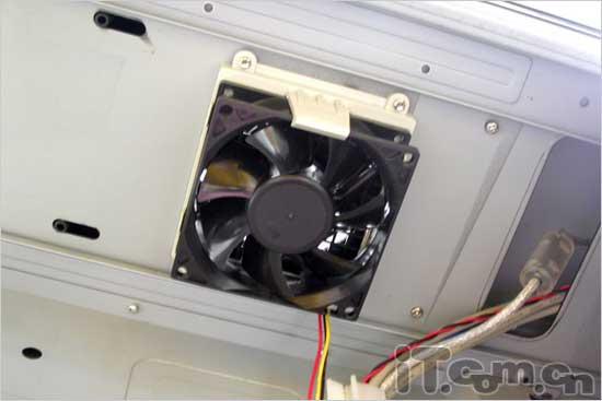 机箱内部为五金结构,采用了厚度适中的SECC镀锌钢板,可以看到其空间非常大这样能提供足够多的位置,能够适应多光驱和多硬盘的安装和使用。机箱材质边缘也都进行了折边处理,减少了用户装机时被划伤的机率。除了笔者在前面介绍的两个外部散热设计以外,在内部的散热性设计更是丰富,在内部共设计了四个60MM机箱风扇。前面板后面有一个;机箱提手处下面一个;机箱后置接口处一个;再加上符合38度机箱设计的那个正对着CPU的侧面板上的一个。这样箱内体部就能够形成合理的风道,以给整个主机进行散热。