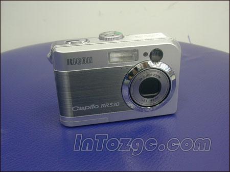 首先出场的选手,是理光在上个星期推出的低端产品??RR530,它的外形设计较为紧凑,银灰色的机身,没有过多花哨的装饰,另外出于成本的考虑,本机并未使用金属材质的外壳,手感较差。