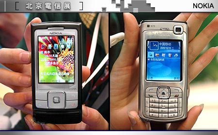 另一方面,Nokia 中阶 3G 机种 N70 也在现场为十一月份的上市计划做最后暖身,一旁还有 200 万画素滑盖机 Nokia 6270、Nokia 6280 陪伴,足见 Nokia 在 2005 年末至 2006 年初之间,早已经为商务、音乐、消费、3G 等不同族群做好准备,与 Motorola、Sony Ericsson 一决高下。