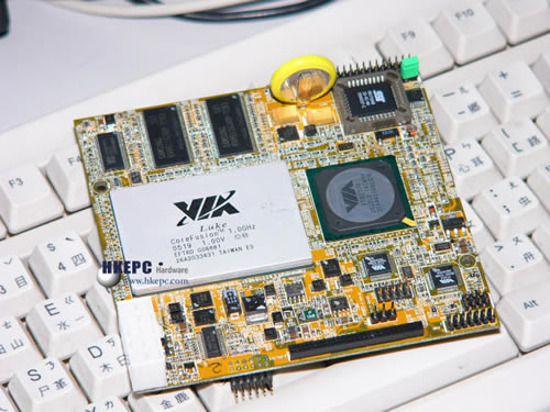 有没有想过一片内建了处理器、南北桥、记忆体、Ethernet及音效功能的主机板可以如此娇小!?图中的Luke CoreFusion工程样本型号为VT5338C,是现时全球最细小的x86系统,只有10cm x 10.5cm,但却拥有整台计算机的功能,对比笔者桌上的键盘,彷佛变成了小人国的东西。