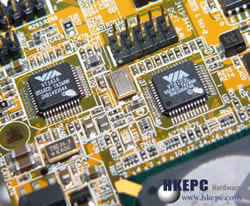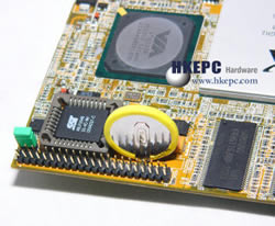 南桥方面,VIA VT5883C采用上VIA VT8237R南桥,虽然晶片是支援4个SATA及2个IDE接口,但由于PCB空间有限而只提供一个IDE硬碟机接口,而且是支援2.5"硬碟的规格,全因采用2.5" Notebook用的硬碟有助整个系统的微型化。由于VT8237R已内建AC 97音效及10/100Mbps Fast Etjermet MAC,故此VIA VT5883C建有VIA VT1616 Audio Codec晶片提供最高6声道输出,而网络方面则透过VIA VT 6103 PHY晶片提供10/100MBps网络功能。