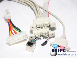 由于主机板只有10cm x 10.5cm,已经容纳不了Back Panel,因此Ethernet的RJ 45接口、Audio的Jack接口及USB 2.0接口都要采用外接线。VIA VT5883C并没有提供Keyboard和Mouse接口因此需要用USB Keyboard及Mouse运作。电源输入方面,它用的电源接口和我们桌面用的20Pins或24Pins的ATX规格不同,是Mini-ITX规格常见的10Pins接口,幸好VIA有提供20Pins转10Pins的电源转插给我们测试。