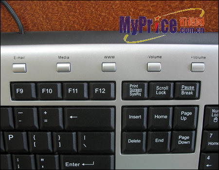 为了符合潮流趋势,方便多媒体环境下的应用, DLK-5008还提供了5个多媒体热键,分布在键盘右上方。“E-mail”可直接打开Outlook,“Media”对应打开Windows Media Player,“WWW”键则是打开IE,大大的方便了操作。这些热键功能在98以上的系统中都可以直接使用,在95和98环境下则需要安装驱动。